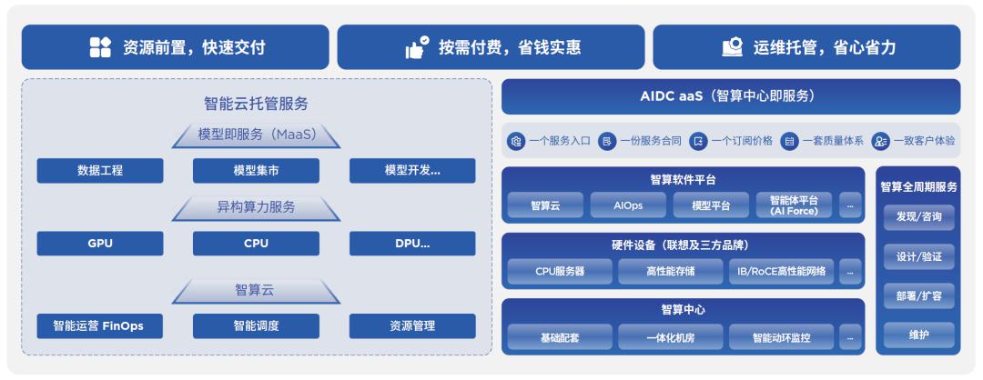 联想智能云(Lenovo xCloud)是联想以AI为核心打造的新一代智能云。依托联想40年IT智慧、全球化服务经验及专业业务流程孵化而成,为企业提供更智能、更可靠、更具成本效益的云与AI解决方案,助力企业释放AI潜能。联想智能云以混合云基础架构为坚实底座,持续打造数据和知识平台、模型平台和智能体平台,以及智算中心解决方案、TruScale算力服务和全周期服务的解决方案和服务矩阵。通过提供全栈全周期方案,联想智能云满足客户在AI算力、AI工程化以及AI治理等领域不断增长的需求。